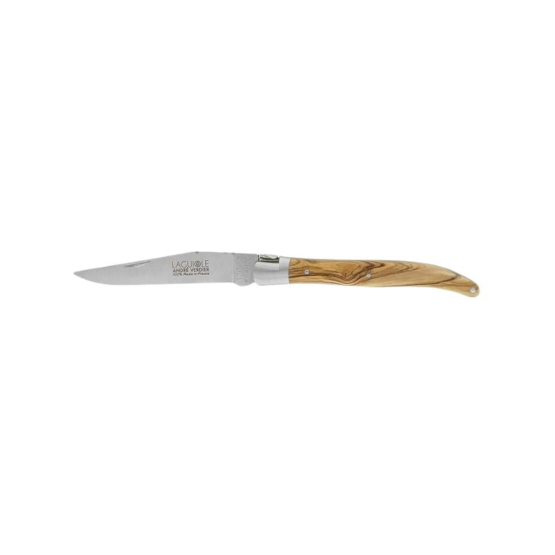 Andre Verdier Laguiole Deluxe Folding Pocket Knife 11 cm, Olive Wood Handle, Made in France