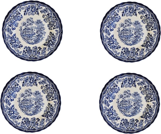 Churchill New Royal Wessex Tonquin Blue Chelsea 8" Salad Plate - Set of 4, Made in England