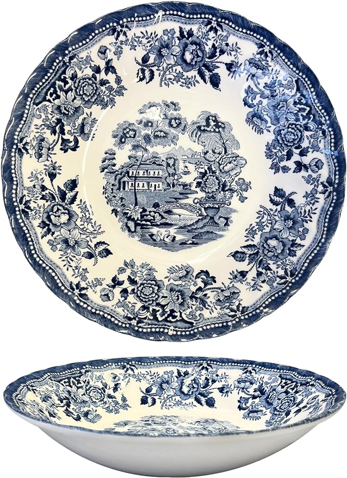 Churchill New Royal Wessex Tonquin Blue Chelsea 9" Pasta Bowl - Set of 4, Made in England