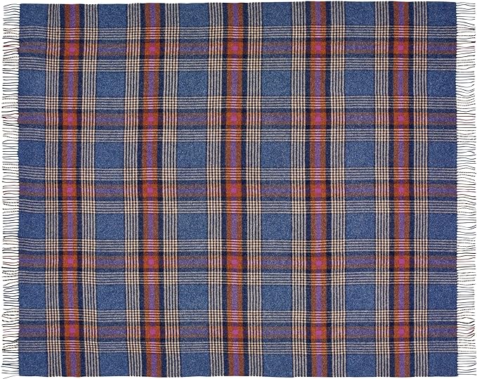 Moon Wool Plaid Throw Blanket, Pure New Wool, Christchurch Mid Blue, Made in UK