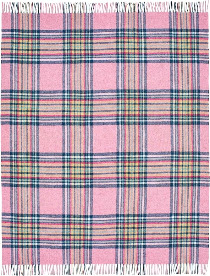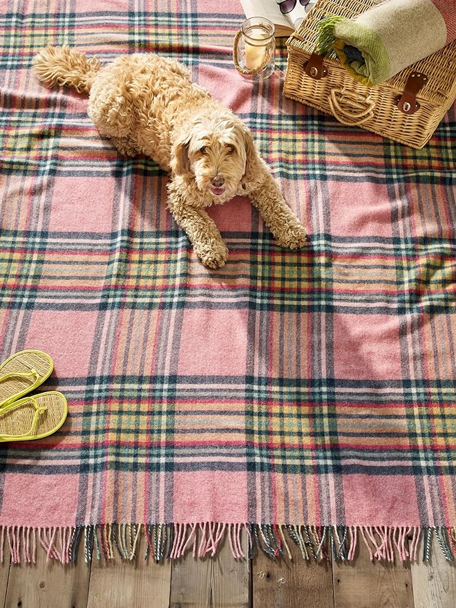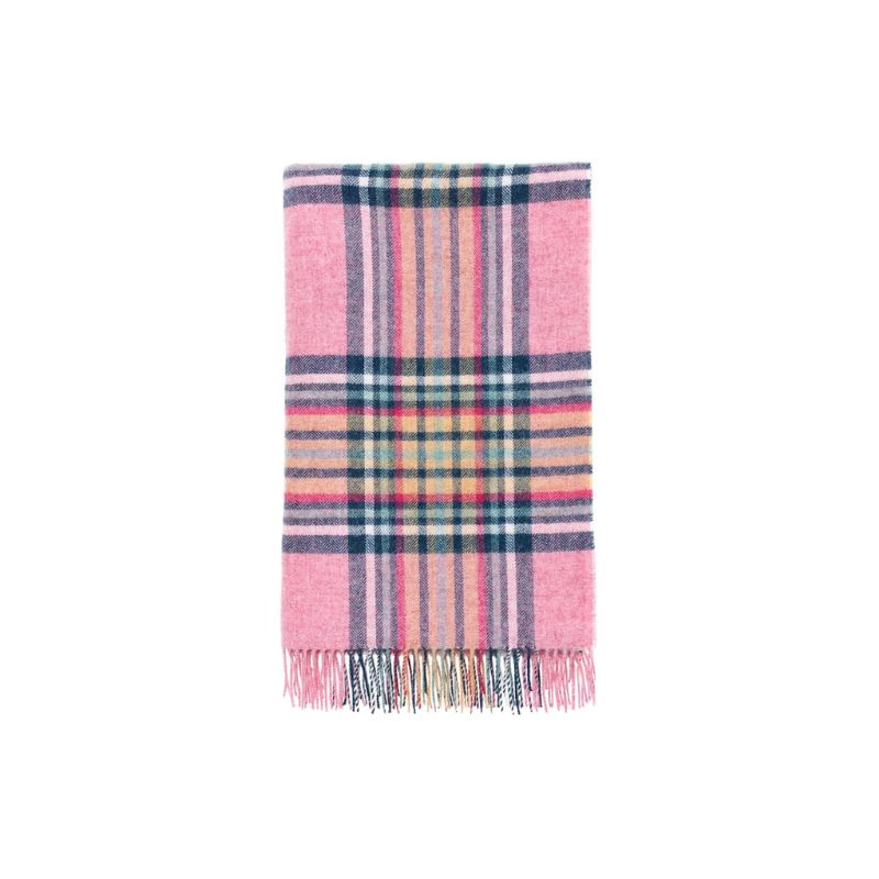 Moon Wool Plaid Throw Blanket, Pure New Wool, St Ives Pink, Made in UK