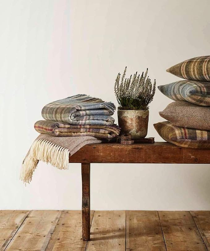 Moon Wool Plaid Throw Blanket, Pure New Wool, Tartan Glen Coe Heather, Made in UK