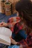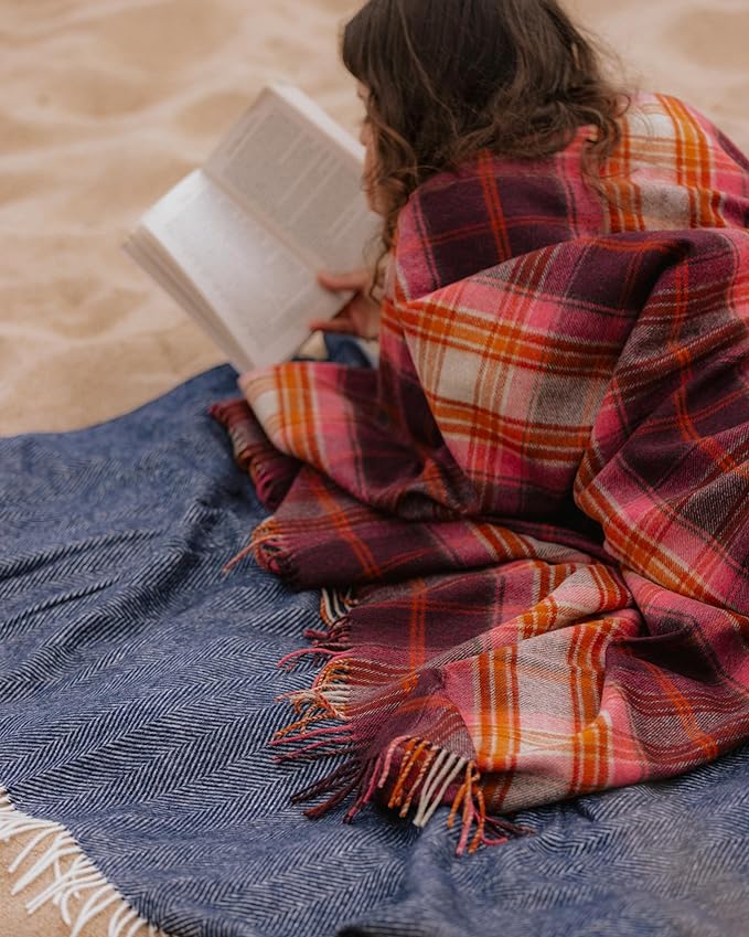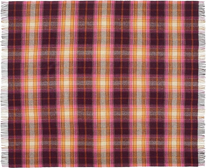 Moon Wool Plaid Throw Blanket, Pure New Wool, Winterton Burgundy, Made in UK