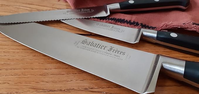 - Made by one of the original Sabatier makers in Thiers region France. The perfect collection of knives for any home or professional chef. This set includes an 8” chef knife, a 4” paring knife, and a 5” serrated edge tomato knife.